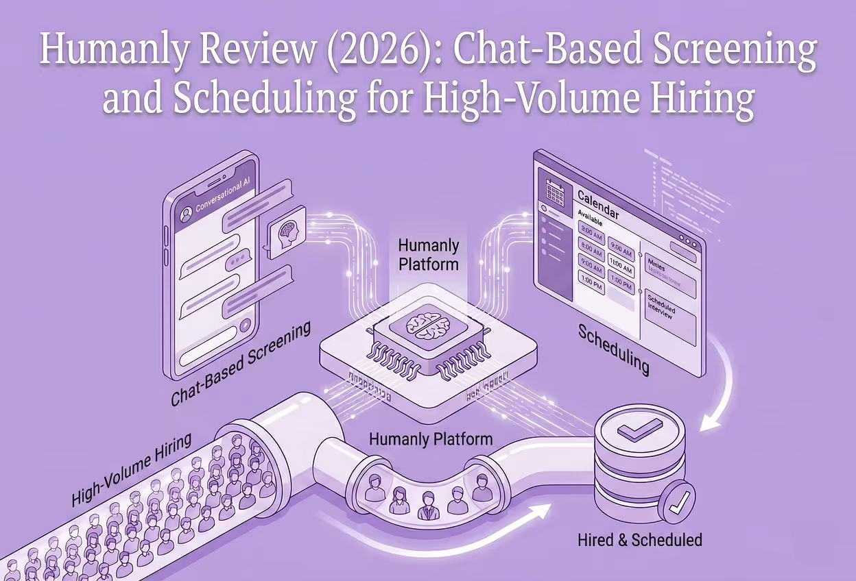 Humanly is a strong option for high-volume hiring teams that want structured chat screening and automated scheduling without the overhead of a full enterprise suite. It tends to deliver value quickly when the initial screen is tight, the handoffs are clear, and the implementation includes basic governance from the start.